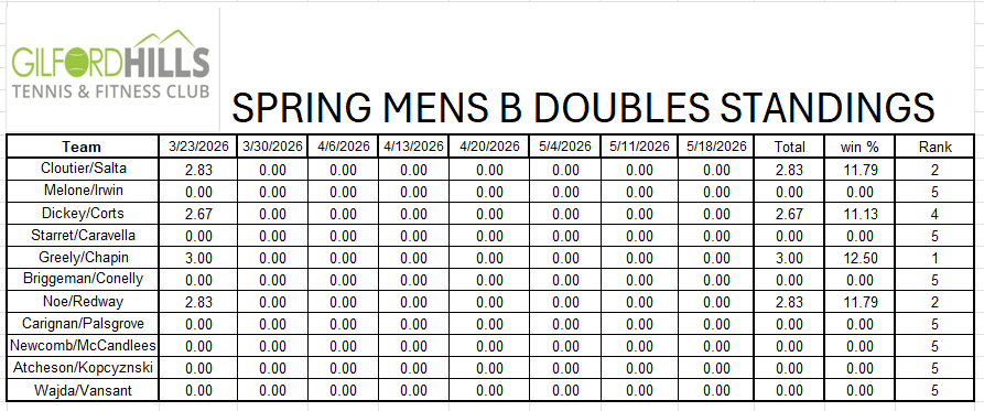 Men's A Doubles Standings