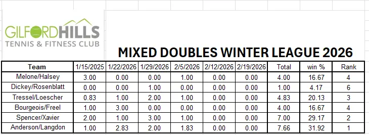 Men's A Doubles Standings