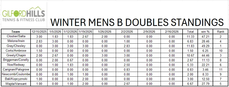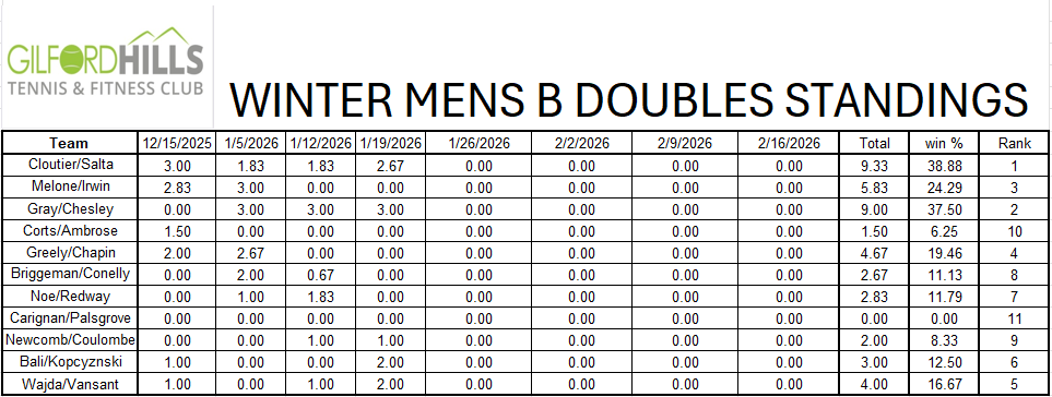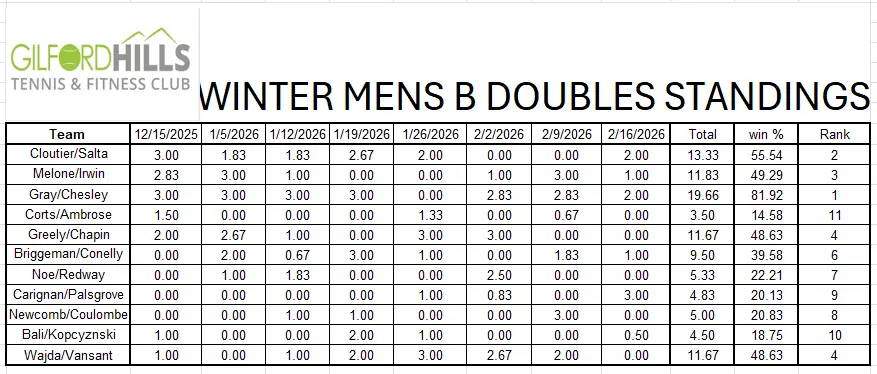 Men's A Doubles Standings