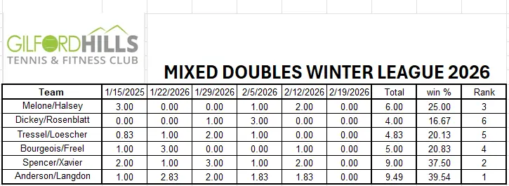 Men's A Doubles Standings