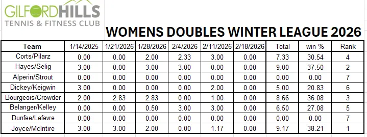 Women's doubles standings